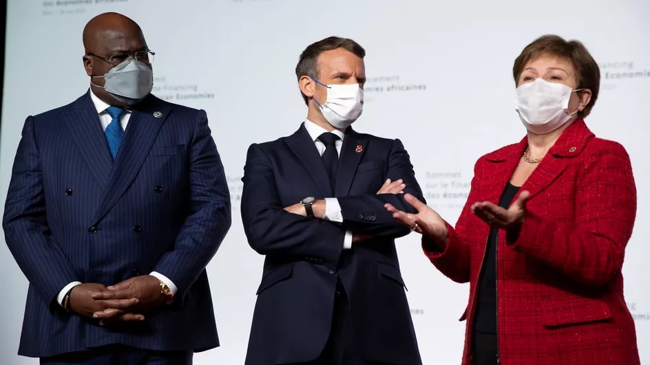 Légende photo : De gauche à droite, le président de la République démocratique du Congo et de l’Union africaine Felix Tshisekedi, son homologue français Emmanuel Macron et la directrice générale du Fonds monétaire international (FMI) Kristalina Georgieva font une déclaration lors du Sommet sur le financement des économies africaines, au Grand Palais Ephémère, à Paris, France, le 18 mai 2021. (REUTERS)